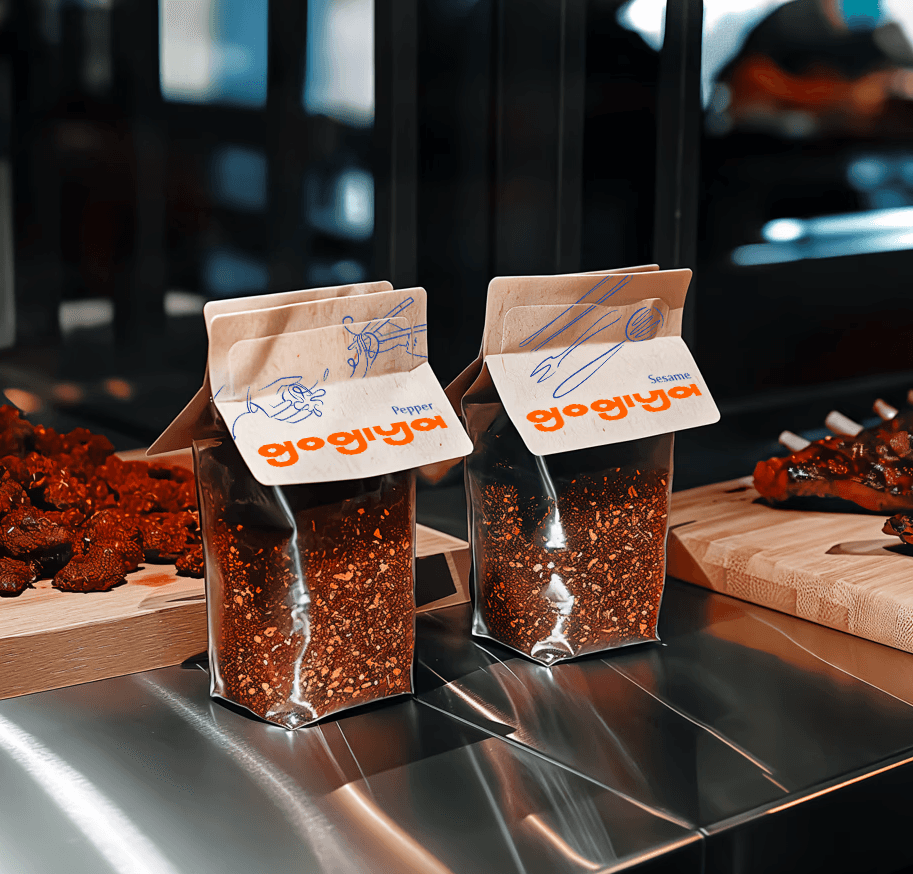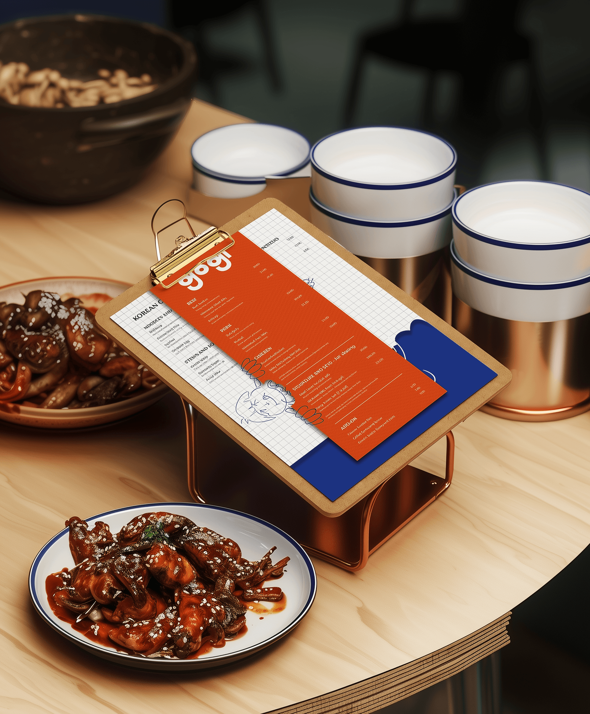 The menu itself becomes part of the experience, eaten visually, symbolically, or literally devoured in the branding system. This playful metaphor reinforces Gogiya’s spirit: food and design coming together around the grill.
